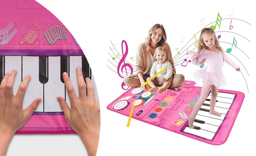 Этот интерактивный коврик предлагает детям творческое пространство для музыкальных экспериментов. Он объединяет фортепиано, барабаны и всевозможные звуковые эффекты, позволяя малышам создавать собственные мелодии.