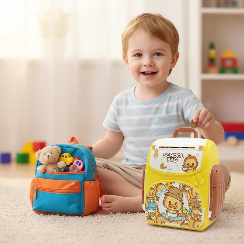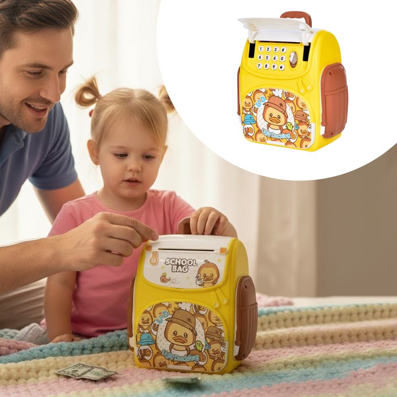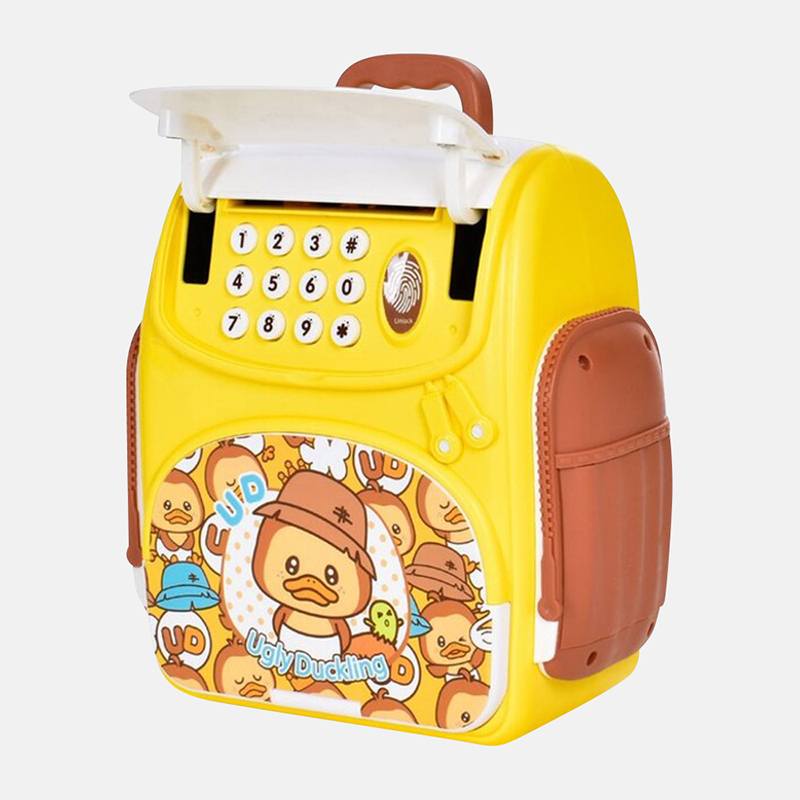 Эта копилка-рюкзак “Ugly Duckling” с красочным дизайном удивит любого ребенка! Ведь это не не просто копилка — это настоящий детский сейф, который превращает накопление в увлекательную игру. Главной особенностью копилки является функция автоматической затяжки купюр, имитирующая работу настоящего банковского терминала.
