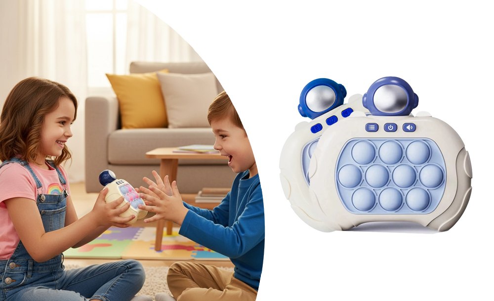 Электронный Pop it — это яркая портативная игрушка, которая объединяет тактильное удовольствие, музыку и световые эффекты! Нажимайте на кнопки, слушайте весёлые мелодии и наблюдайте, как загораются огоньки — каждая реакция делает игру ещё интереснее.