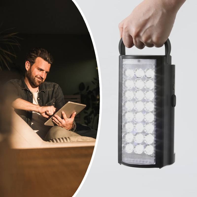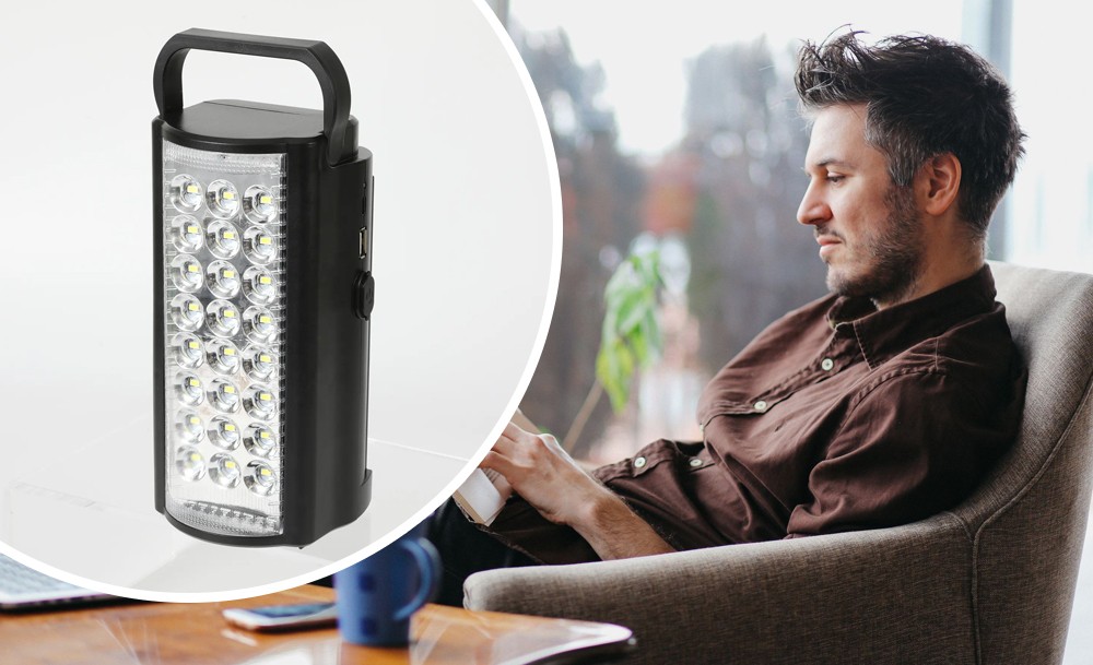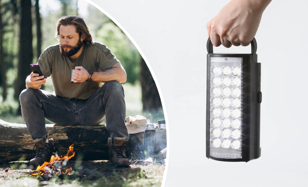 Фонарь имеет встроенный повербанк, позволяющий экстренно подзарядить телефон или планшет через USB-порт. Прочный корпус и удобная ручка делают его надежным помощником в любой ситуации.