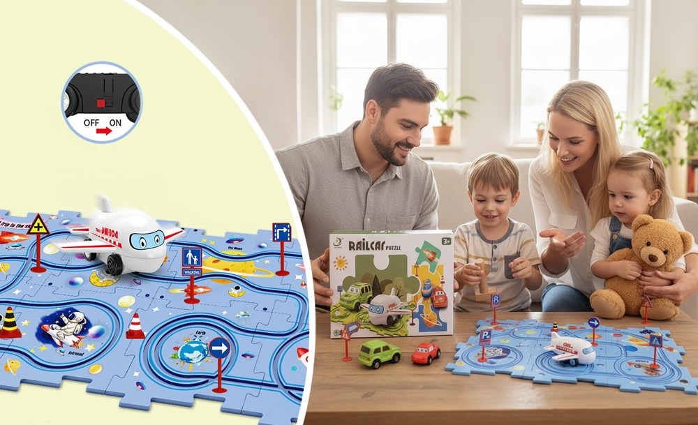 Игра стимулирует пространственное мышление и мелкую моторику рук при сборке пазлов. Наблюдение за движением самолетика помогает развивать зрительную координацию и концентрацию внимания. Каждый построенный маршрут каждый раз дарит ребенку чувство успеха от собственного инженерного решения. Набор легко разбирается и компактно хранится.