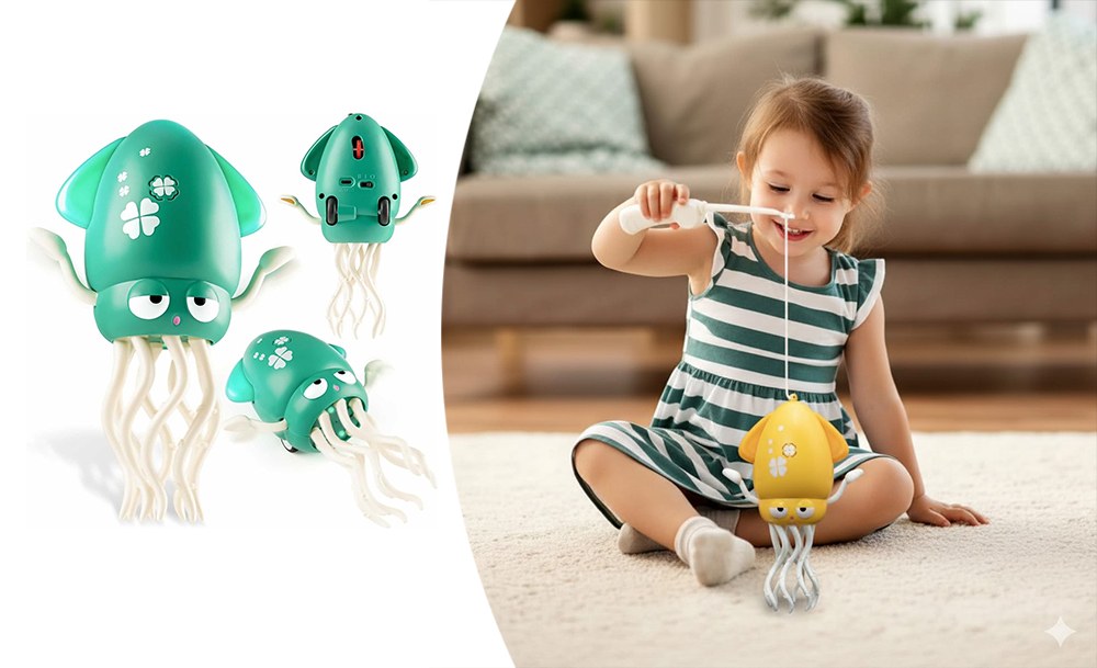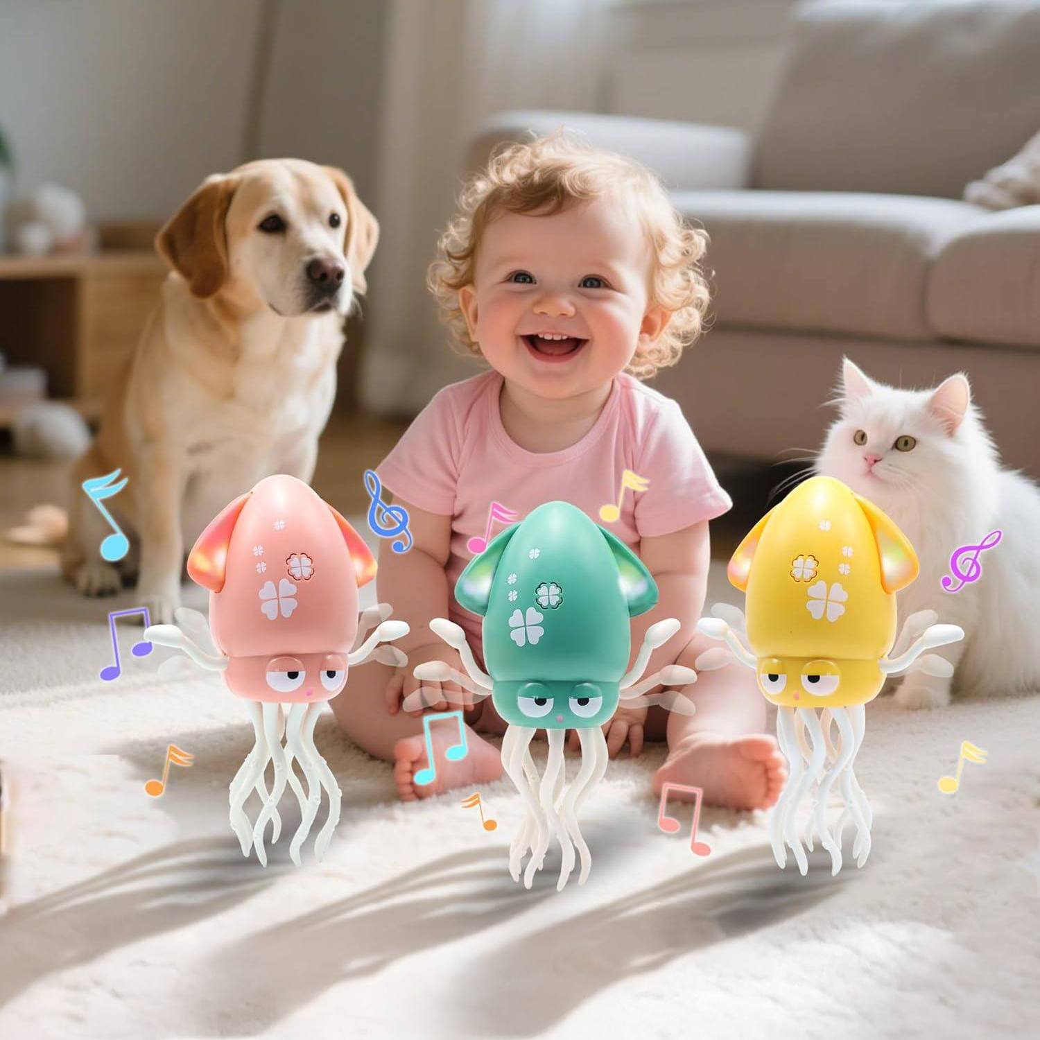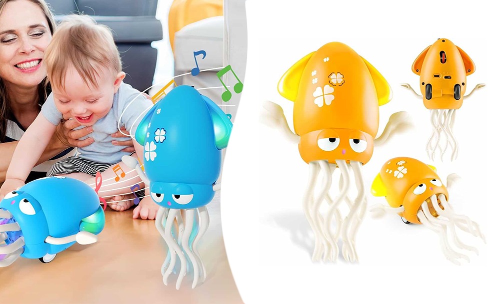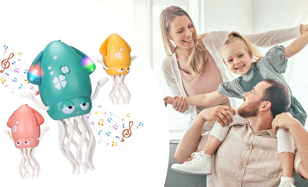 Интерактивный танцующий осьминог — это яркая и весёлая игрушка для активной игры! Он светится разноцветными огнями, проигрывает весёлую музыку и двигается на маленьких колёсиках, шевеля лапками, создавая настоящее шоу прямо у вас дома.