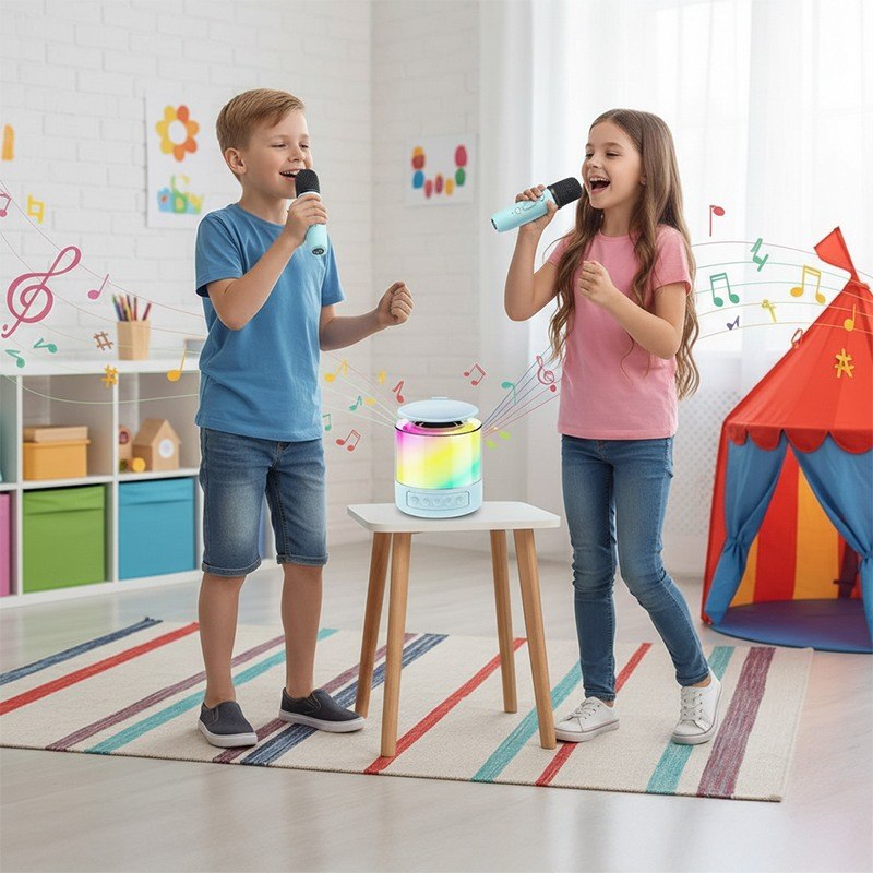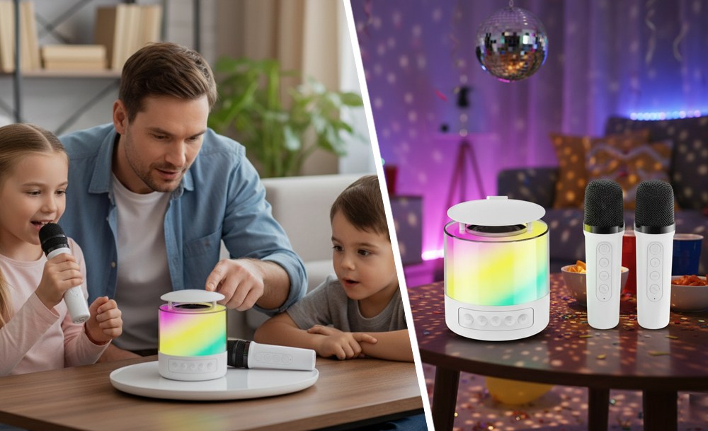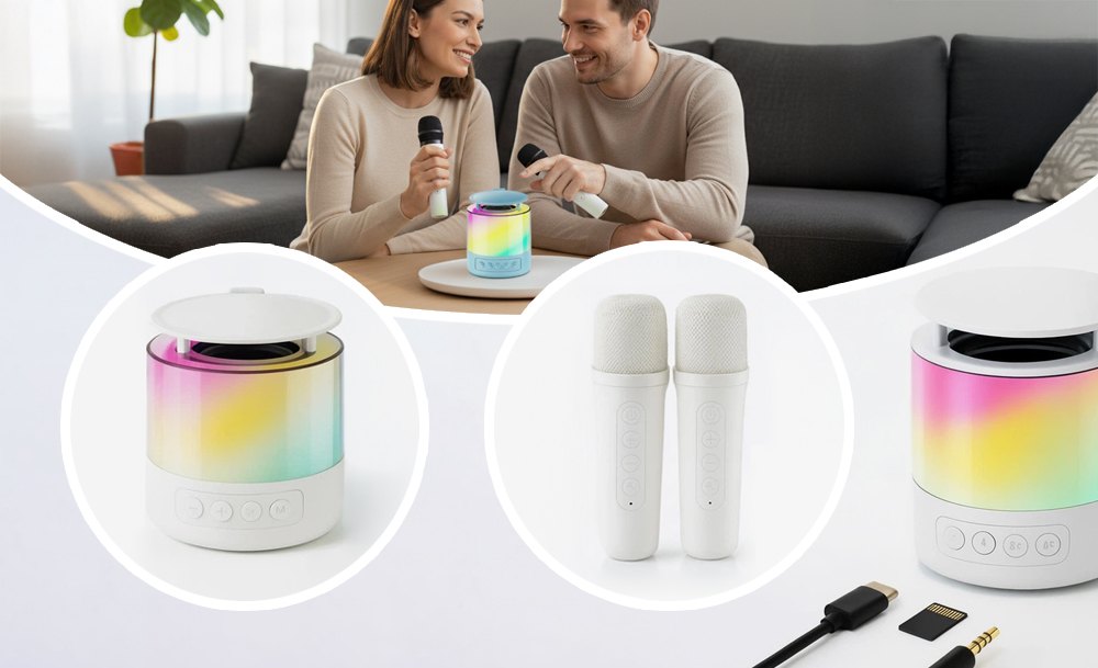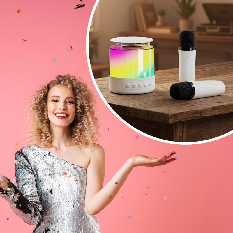 Караоке-набор K19 – готовое решение для семейных праздников и дружеских встреч. Портативная колонка с яркой LED-подсветкой превращает любое место в зажигательный танцпол. Чистый стереозвук с глубокими басами и динамичная светомузыка создают атмосферу настоящей вечеринки где угодно – дома, на природе или в поездке.