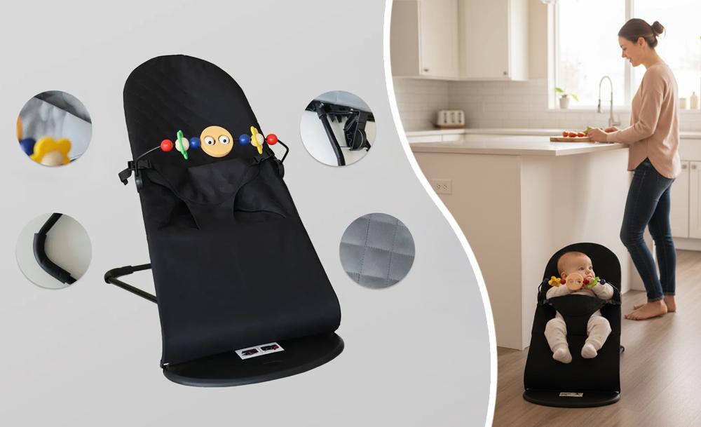 Яркие подвесные фигурки развивают внимание, зрение и моторику, превращая отдых в увлекательную игру. Устойчивая конструкция обеспечивает безопасность и удобство использования качалки как дома, так и в поездках, а практичные материалы легко очищаются. Balance Soft – забота о малыше и спокойствие для родителей.