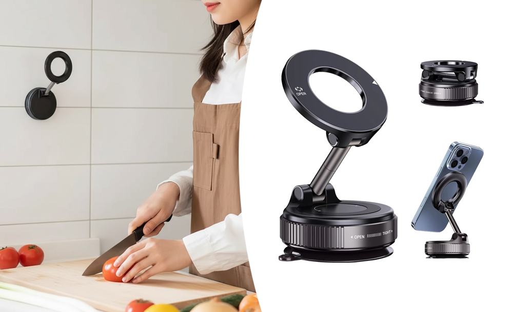 Свободный оборот на 360° позволяет выбирать подходящий угол обзора для навигации, звонков или просмотра видео. Совместимость с MagSafe делает держатель подходящим для любых смартфонов с магнитным кольцом. Компактный гаджет экономит место и обеспечивает безопасность в пути: руки всегда остаются на руле, а телефон – под постоянным контролем.