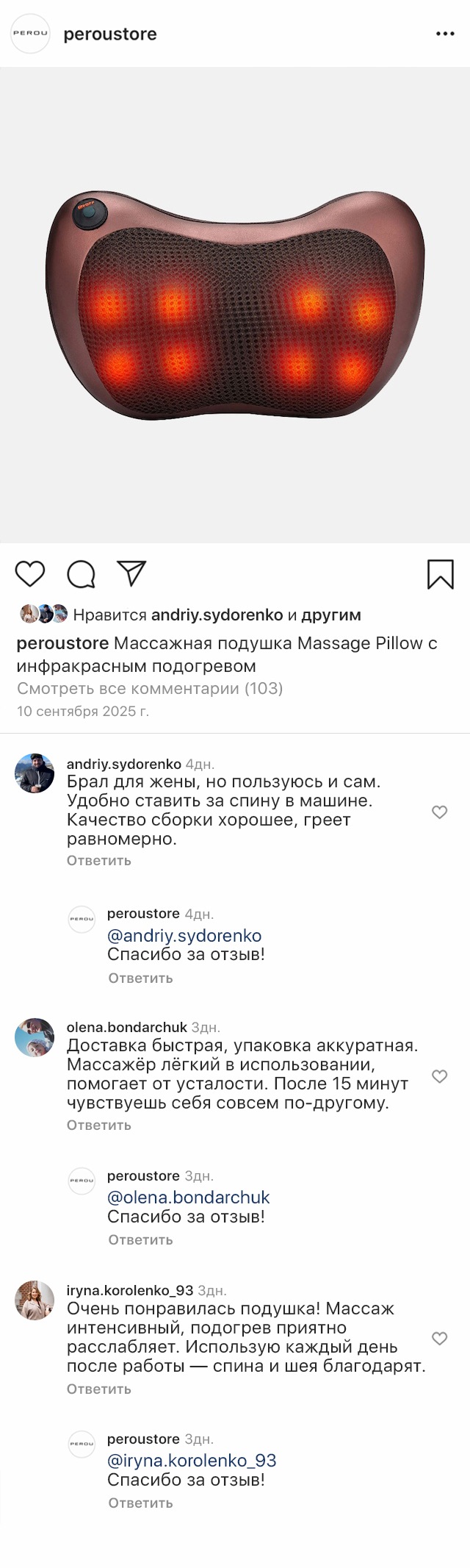 Эргономичная форма подушки позволяет приспосабливать ее к любой части тела. Подушка имеет компактные размеры и может подключаться к сети или автомобильному адаптеру, поэтому ею можно пользоваться не только дома, но и в офисе и брать с собой в путешествие.
