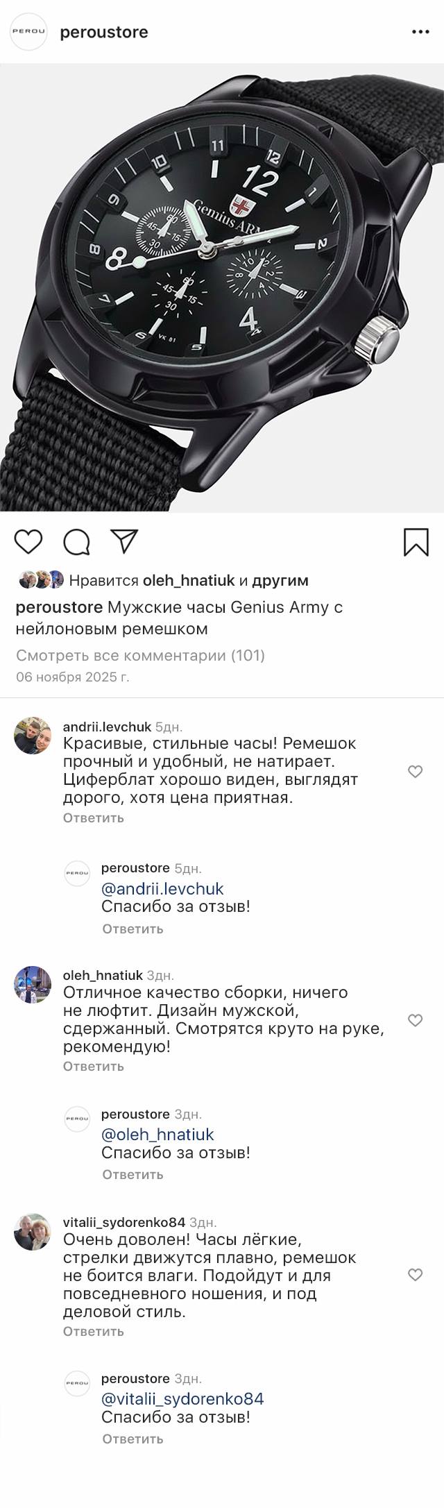 Мужские часы Genius Army отличаются крепким корпусом из нержавеющей стали и кварцевым механизмом для точного хронометража. Диаметр циферблата составляет 42 мм – это обеспечивает четкое считывание времени.