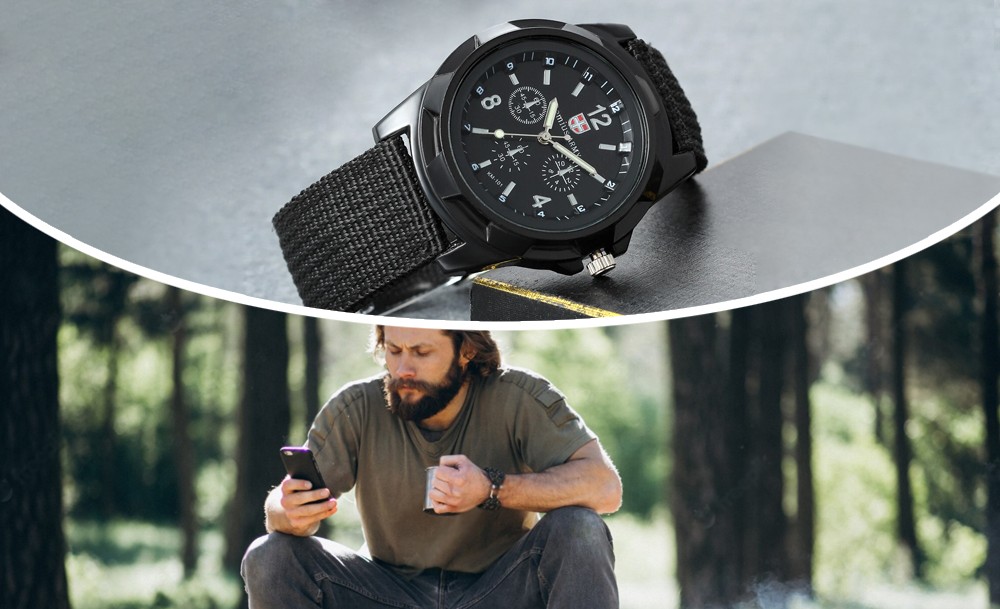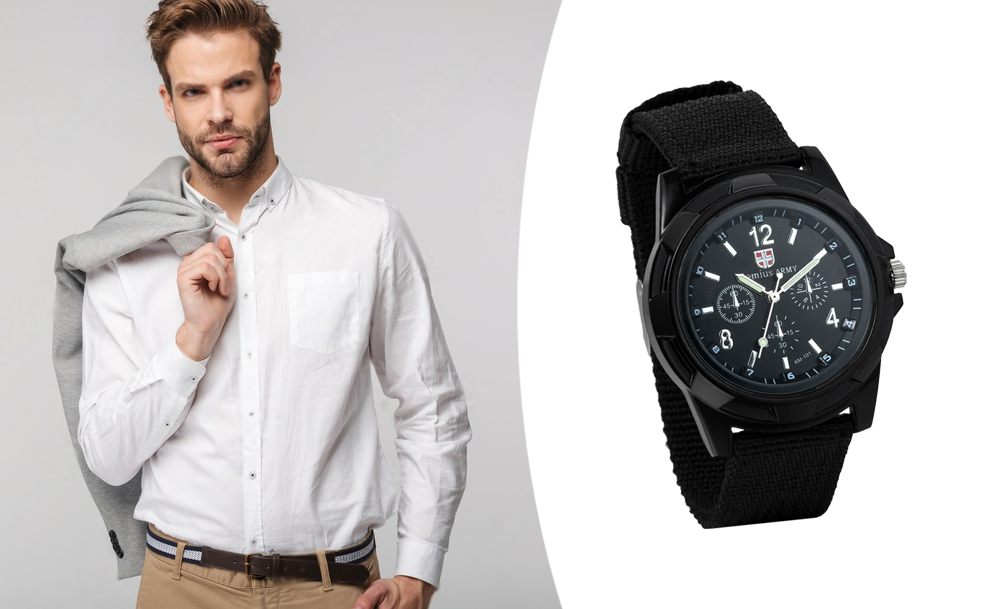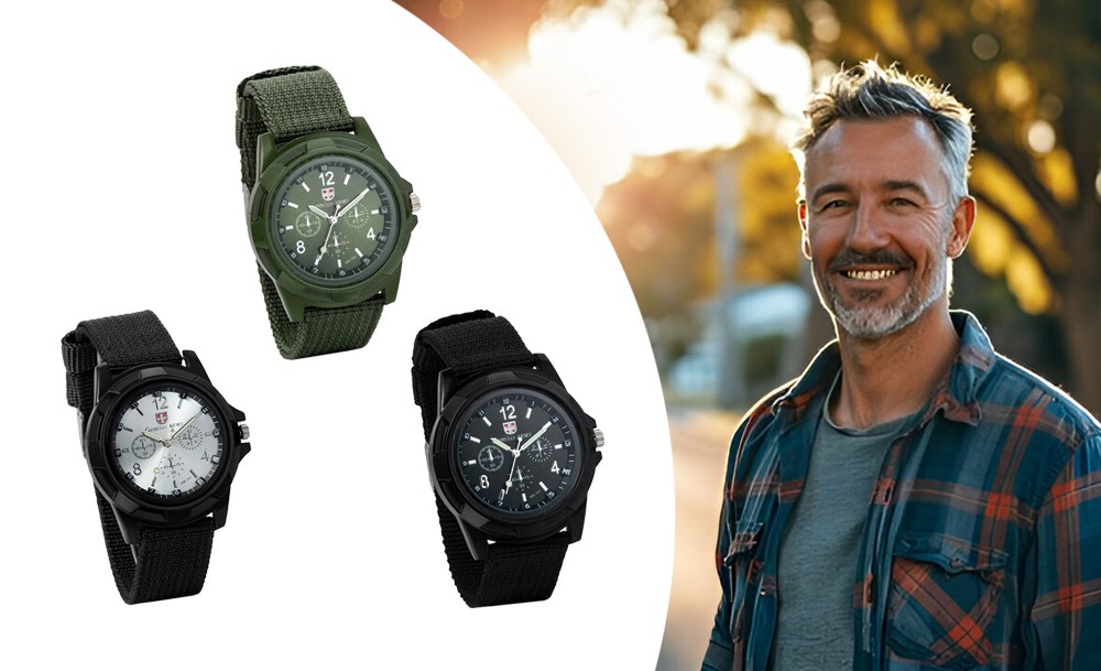 На циферблате расположены большие контрастные цифры и стрелки с люминесцентным покрытием для видимости в темноте. Часы оснащены надежным нейлоновым ремешком, который удобно фиксируется на запястье и устойчив к износу. Водостойкость позволяет использовать его во время мытья рук или под небольшим дождем.