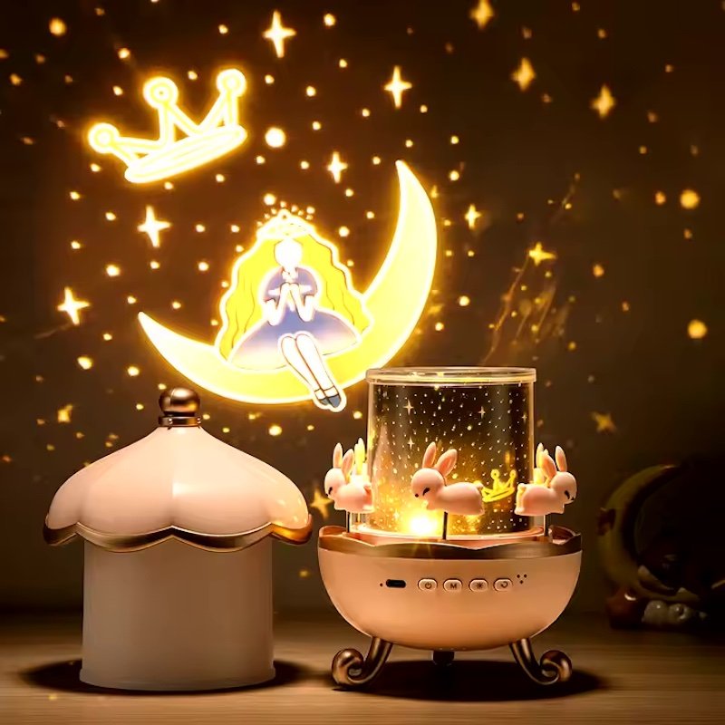 Светильник-ночник LED «Карусель зайчиков», 12 мелодий + Bluetooth – проектор звездного неба с проекциями превращает любое помещение в волшебное космическое пространство. С помощью USB-подключения, вы сможете наслаждаться завораживающими звездными узорами и планетами, создавая уникальную атмосферу для расслабления и сна.