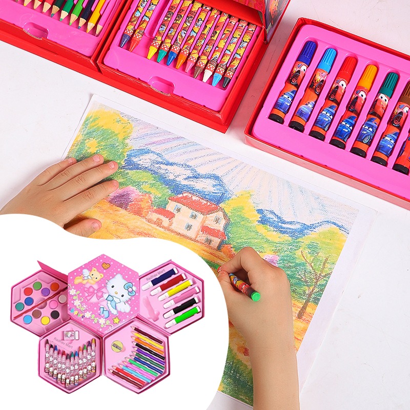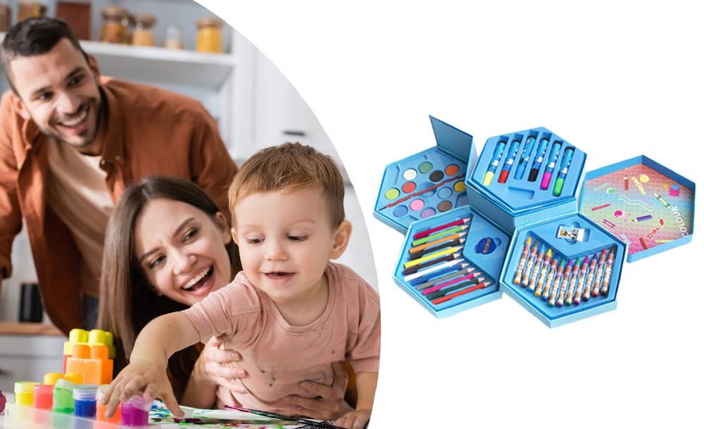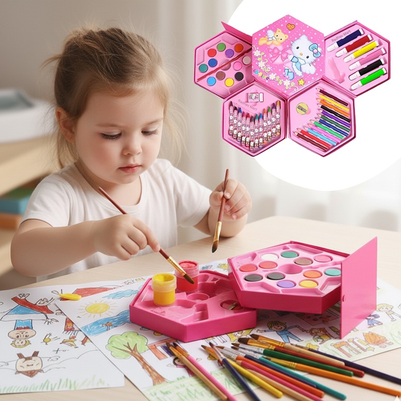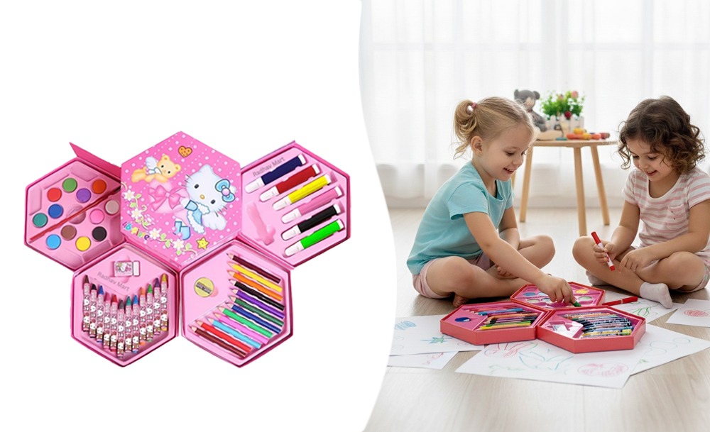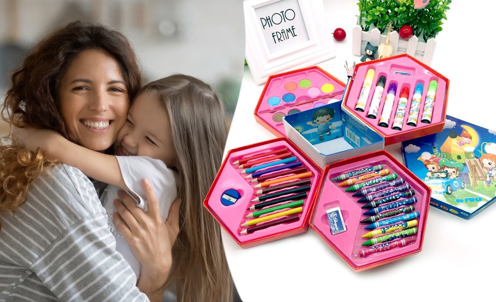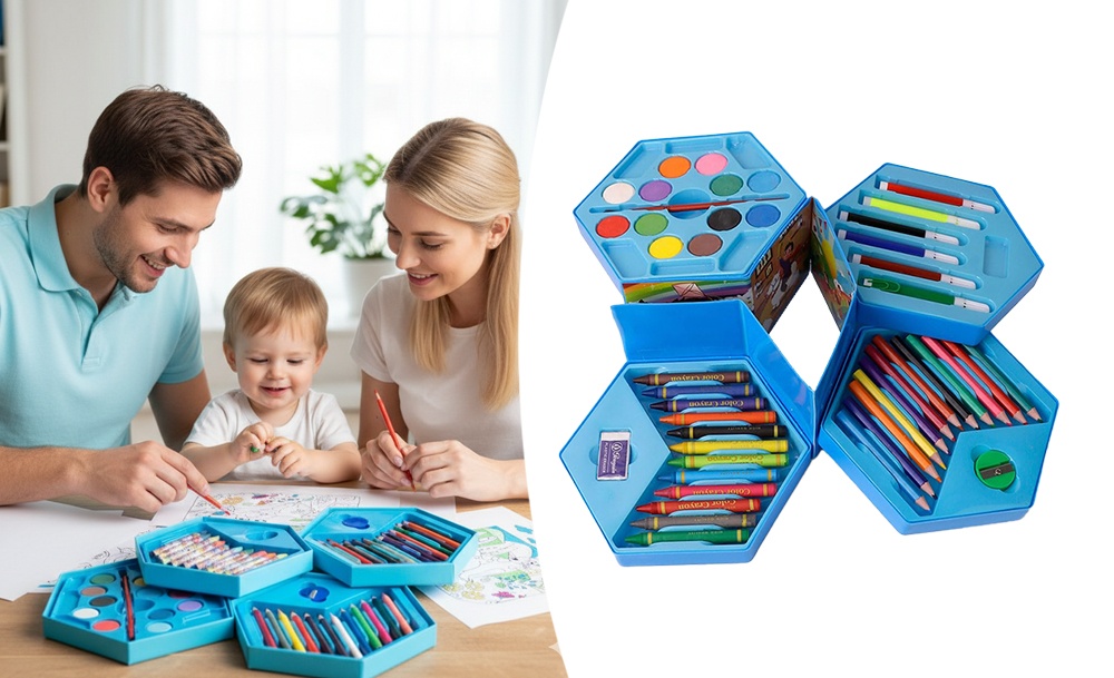 Этот универсальный набор предлагает 46 инструментов для юных художников и художниц. В нем собраны основные материалы для рисования и раскрашивания. Набор расположен в удобном кейсе для хранения и транспортировки, что помогает организовать рабочее место.
