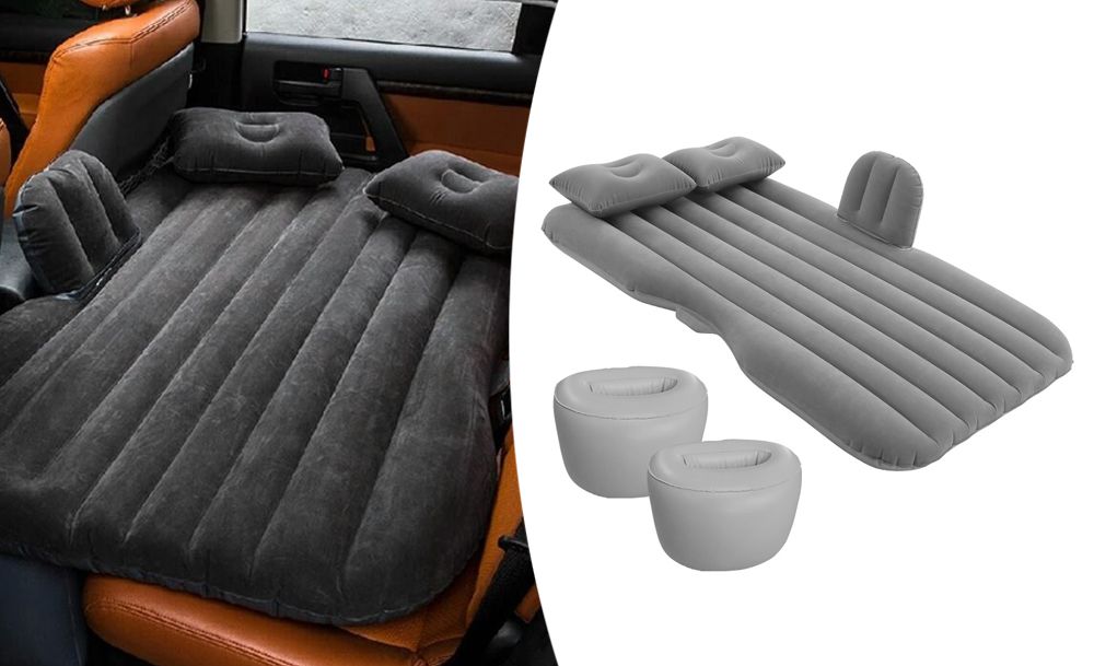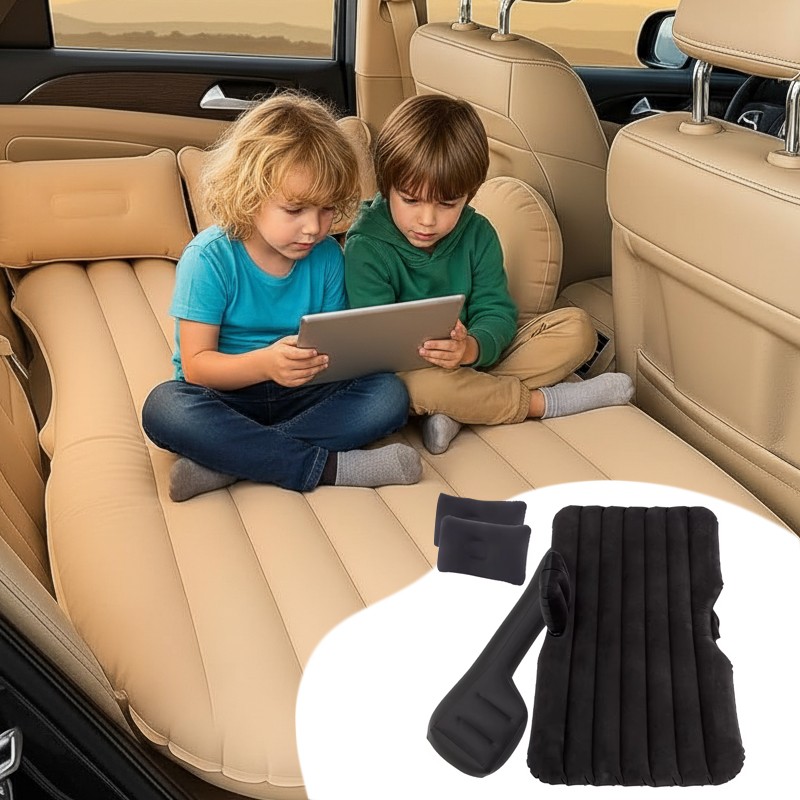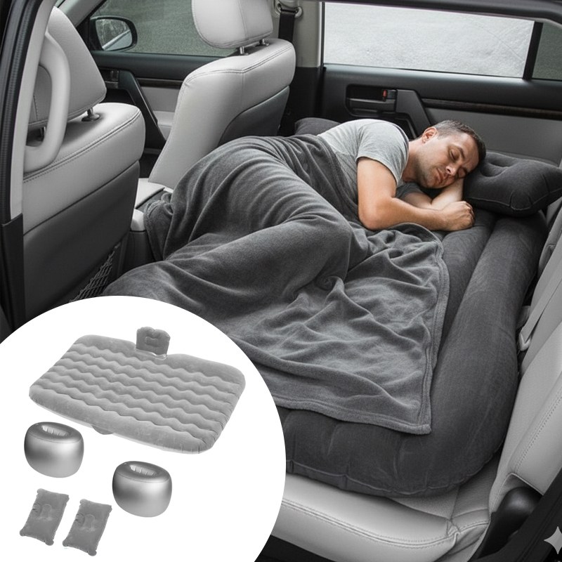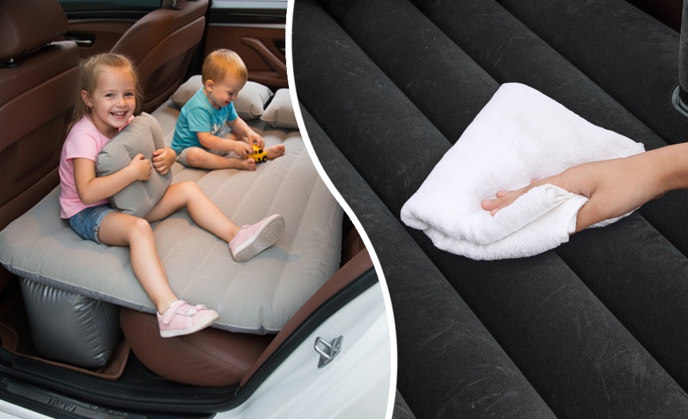 Этот надувной матрас превращает заднее сиденье автомобиля в комфортное спальное место. Он изготовлен из прочного, устойчивого к проколам материала ПВХ и имеет велюровое мягкое покрытие. Специальная конструкция с опорой заполняет пространство для ног, обеспечивая идеально ровную поверхность.