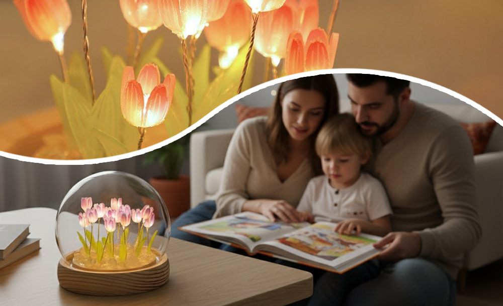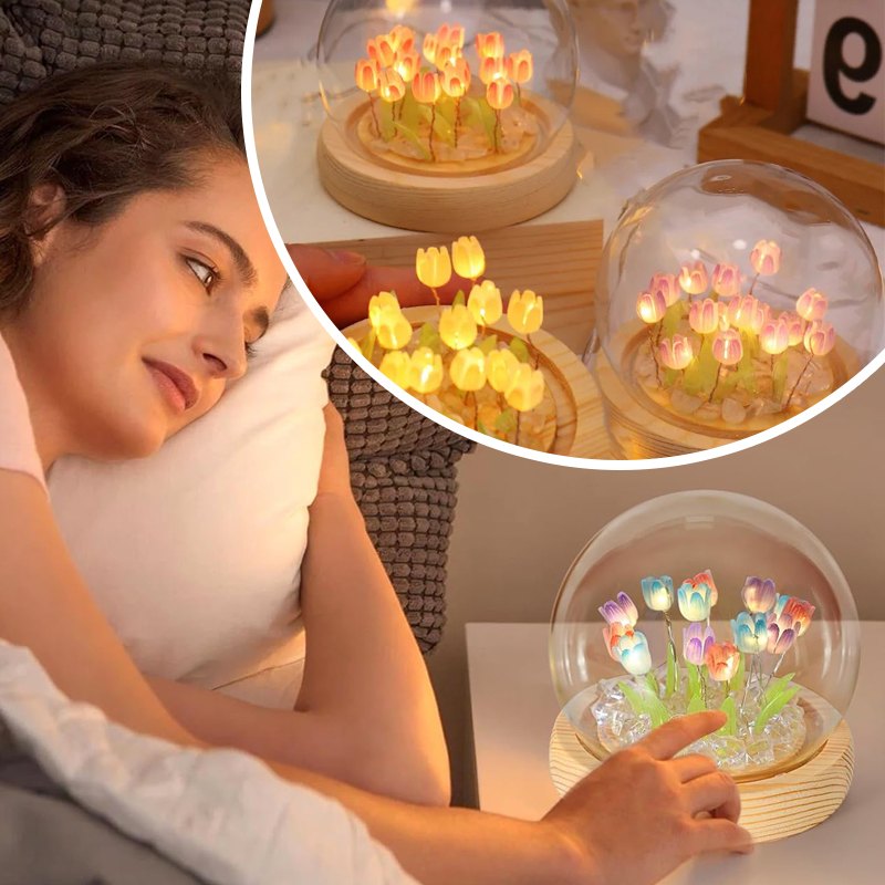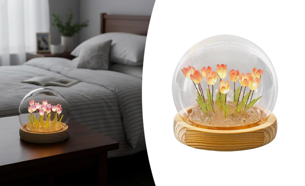 Настольный ночник тюльпаны в стеклянной колбе с LED подсветкой создаёт уютную и тёплую атмосферу в комнате. Элегантный дизайн с нежными тюльпанами в стеклянной колбе станет стильным дополнением интерьера и подходит для детской, спальни или гостиной.