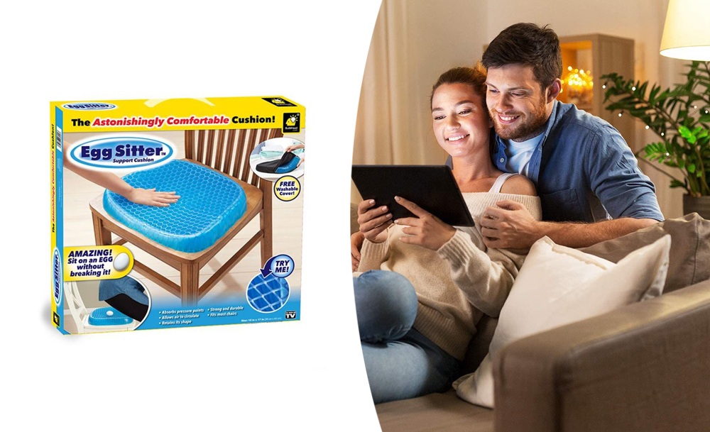 Подушка универсальна: подходит для офиса, автомобиля или дома. Съёмный чехол легко стирать, что делает её гигиеничной. Egg Sitter снимает усталость и расслабляет мышцы, а компактный дизайн позволяет носить её с собой.