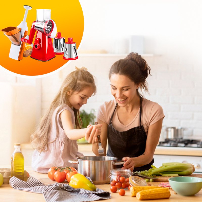 Овощерезка Kitchen Master BIG – это удивительный помощник, который пригодится каждой домохозяйке. С помощью этого приспособления и специальных насадок, входящих в комплект, можно быстро измельчить любые овощи и фрукты для приготовления салатов, натереть их или же сделать аккуратные ломтики для сервировки стола.