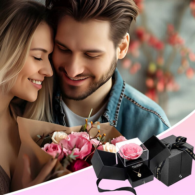 Подарочный набор Best Wishes – это утонченное сочетание красоты и чувств. Внутри — никогда не увядающая вечная роза и кулон с проекцией фразы “I Love You”. Поверните кулон к свету и увидите эти слова, словно из другой реальности. Это действительно магия, спрятанная в маленьком украшении.