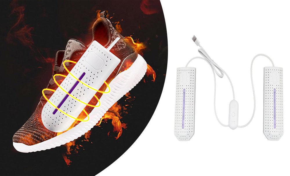 А электрическая USB-сушилка для обуви быстро удаляет влагу, предотвращая появление неприятного запаха. Встроенное ультрафиолетовое излучение уничтожает бактерии и грибки и эффективно дезинфицирует внутреннюю поверхность обуви.