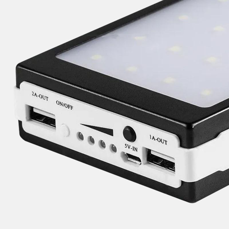 Его можно заряжать от электросети или от солнечного света, после чего значительно повышается время автономной работы любых гаджетов – вы не останетесь без связи в самый неподходящий момент. LED фонарь имеет 3 режима – 20 светодиодов обеспечивают мощный свет, а переход в режим SOS позволяет при необходимости подать сигнал.