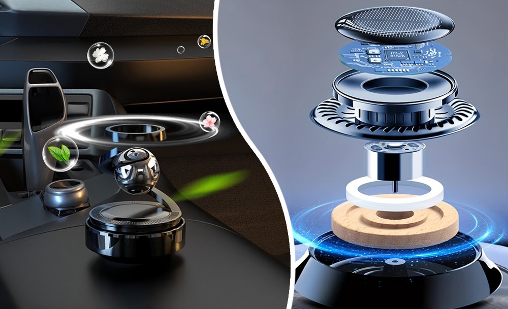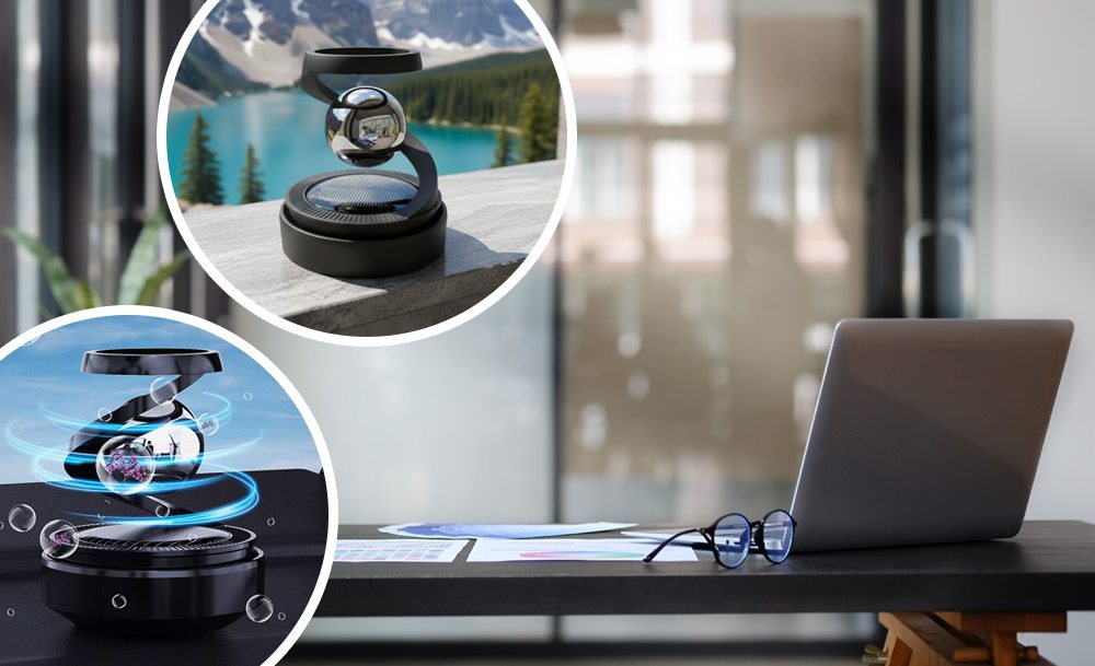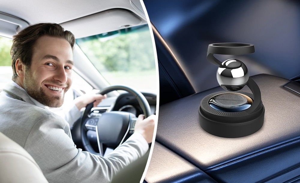 Вращающийся автомобильный ароматизатор Океан на солнечной батарее – стильное решение для тех, кто хочет поддерживать свежесть в салоне без лишних затрат. Солнечная панель запускает плавное вращение левитирующего шара, который равномерно распространяет океанический бриз по всему автомобилю.
