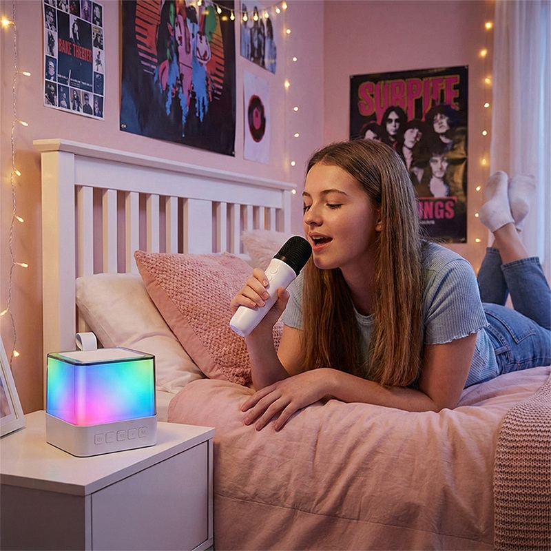 Портативна караоке система K18 Bluetooth колонка з RGB підсвіткою з 2 бездротовими мікрофонами
