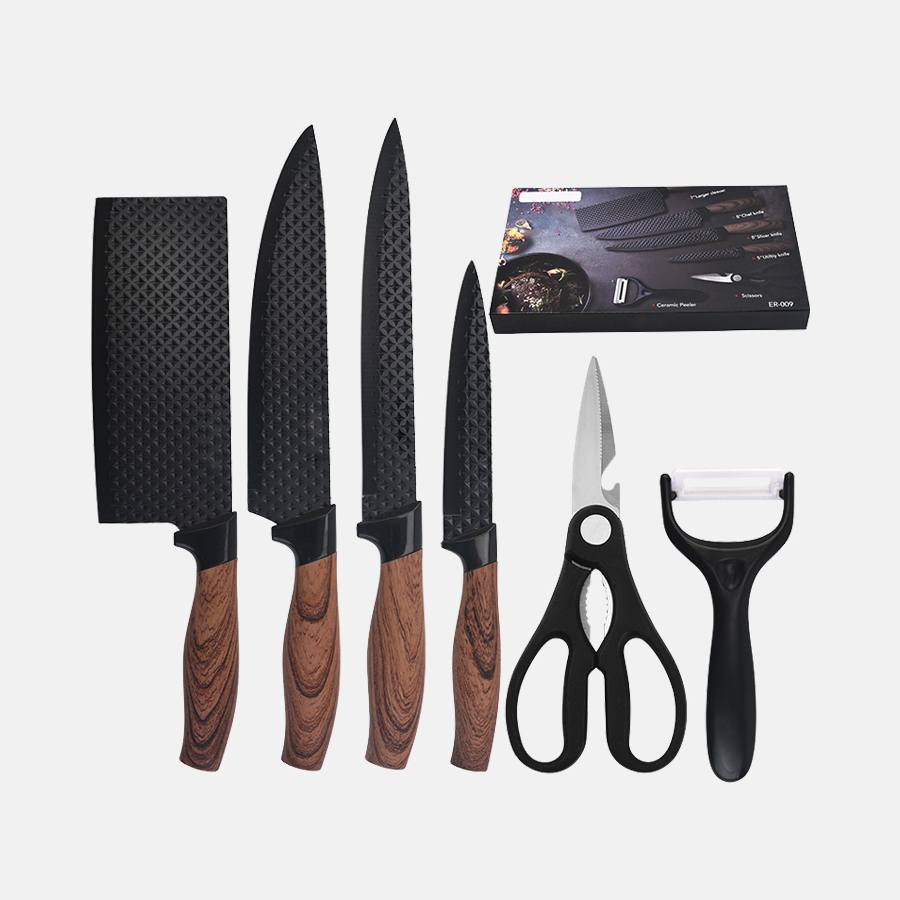 Професійний кухонний набір ножів 6 в 1 з нержавної сталі і дерев’яними ручками