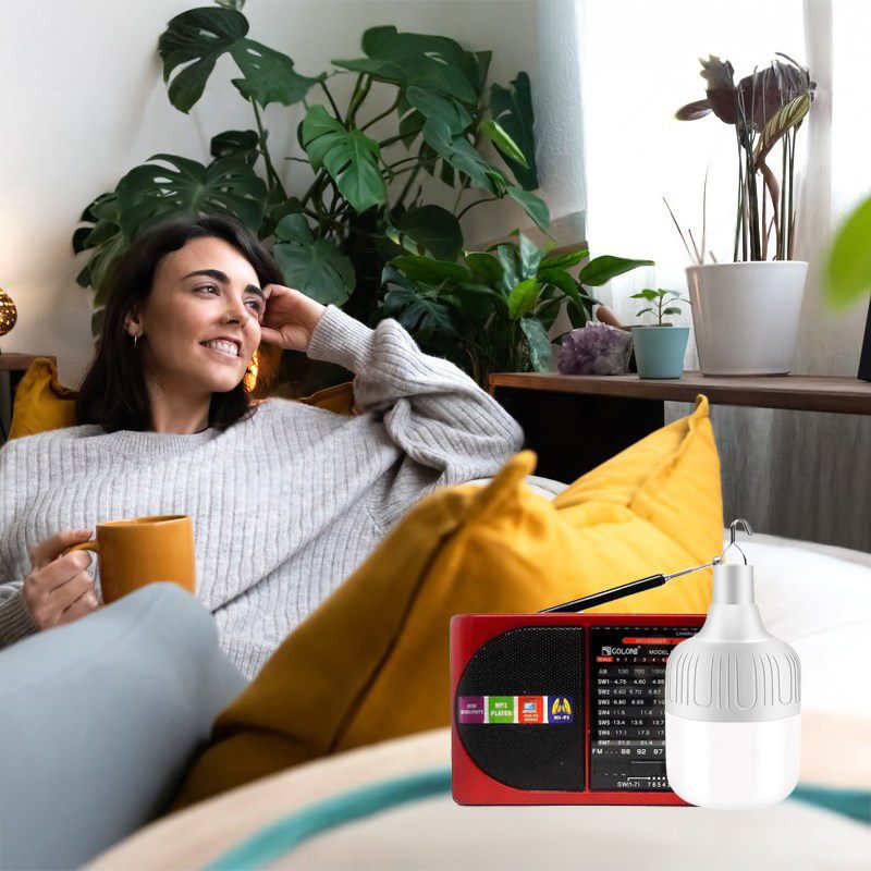 Комплект включає багатофункціональний акумуляторний ліхтар-радіо з підтримкою MP3. Це джерело світла може також відтворювати FM/AM радіостанції та музику з USB-накопичувача чи карти пам’яті. Додатково в комплекті йде акумуляторна лампа з підвісним гачком, що ідеально підходить для кемпінгу, гаража або аварійного освітлення вдома.