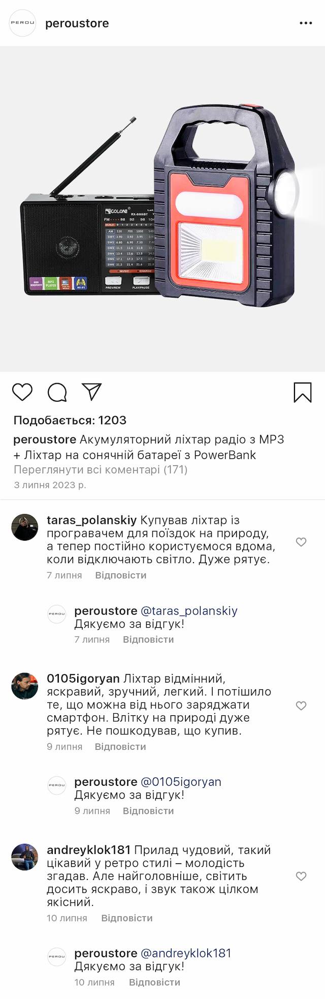 Акумуляторний ліхтар-радіо з програвачем – це універсальний прилад, що поєднує у собі одночасно дві функції – освітлення та прослуховування радіо та музики. Працює як від мережі, так і від акумулятора або батарейок, що дозволяє підтримувати освітлення навіть в умовах регулярного відключення електроенергії.