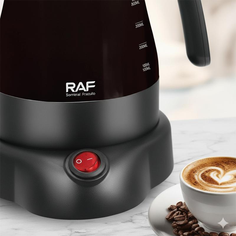 Електрична турка RAF R.7210 — зручна скляна кавоварка для швидкого приготування ароматної кави вдома або в офісі. Прозорий термостійкий корпус дозволяє контролювати процес заварювання, а вбудований захист від перегріву забезпечує безпечну експлуатацію.