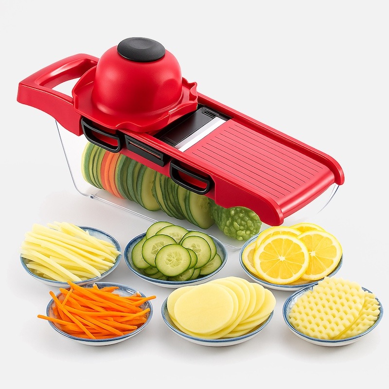 Овочерізка Mandoline Slicer 6 в 1 має набір змінних насадок для різних типів нарізки. Вона дозволяє легко та рівномірно нарізати продукти, заощаджуючи час під час приготування страв. Завдяки компактному дизайну та простоті у використанні, вона стане незамінним помічником на вашій кухні.