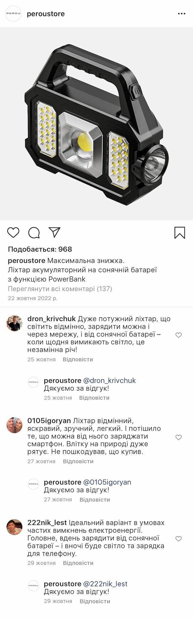 Ліхтар акумуляторний на сонячній батареї з функцією PowerBank – це універсальний прилад, що забезпечує власника альтернативною електроенергією, особливо в ситуації її частого відключення.