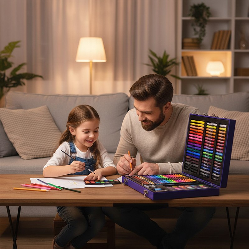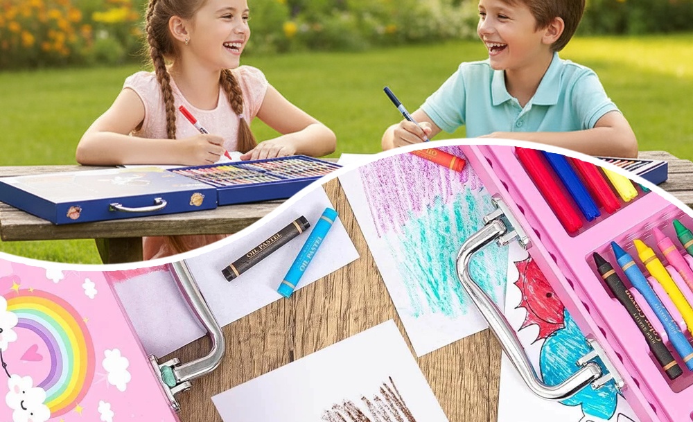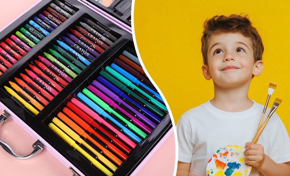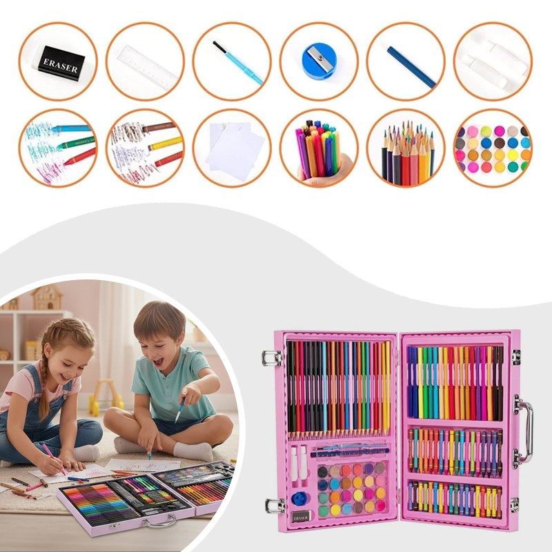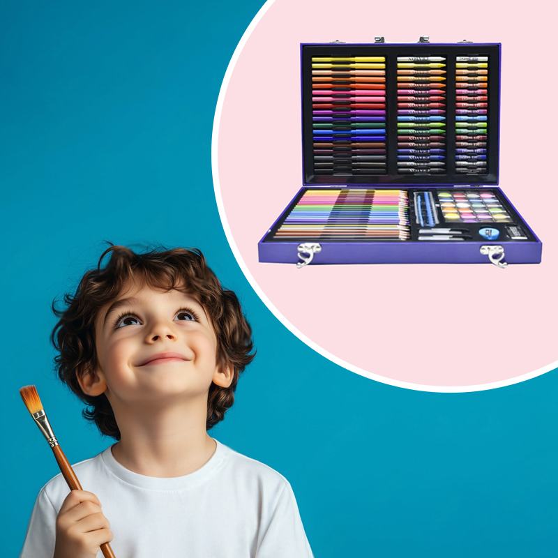 Набір для малювання з 128 предметів у казковому кейсі — це повний комплект для творчості, який сподобається дітям будь-якого віку. У зручному кейсі зібрані олівці, фломастери, воскові крейди, пензлики, фарби та інші аксесуари для малювання та творчості.