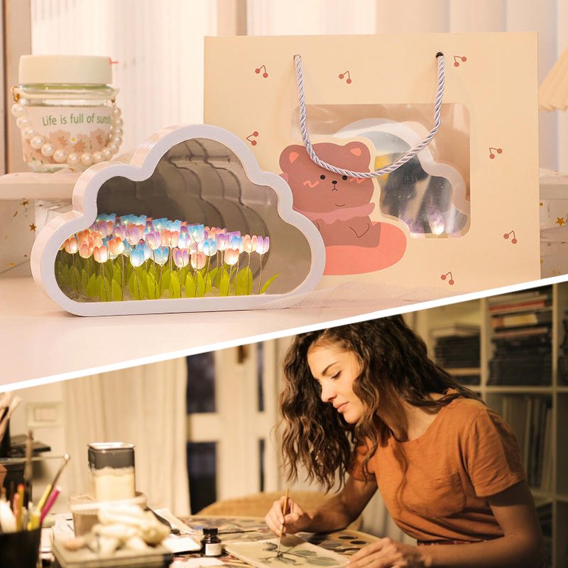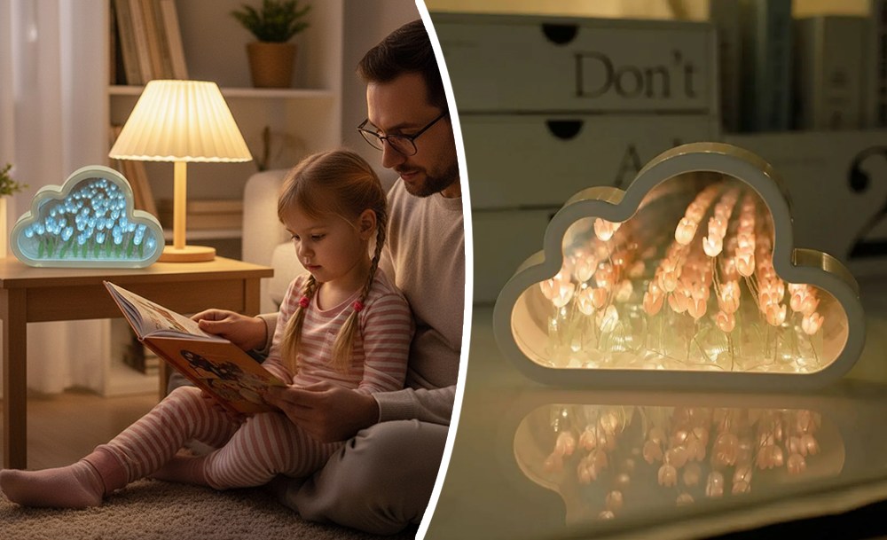 Настільний світильник у формі хмаринки з тюльпанами — це витончена та затишна прикраса для будь-якого інтер’єру. М’яке освітлення створює теплу атмосферу, а декоративні тюльпани надають світильнику ніжності та елегантності. Він ідеально вписується в будь-який інтер’єр, додаючи нотку затишку та стилю.