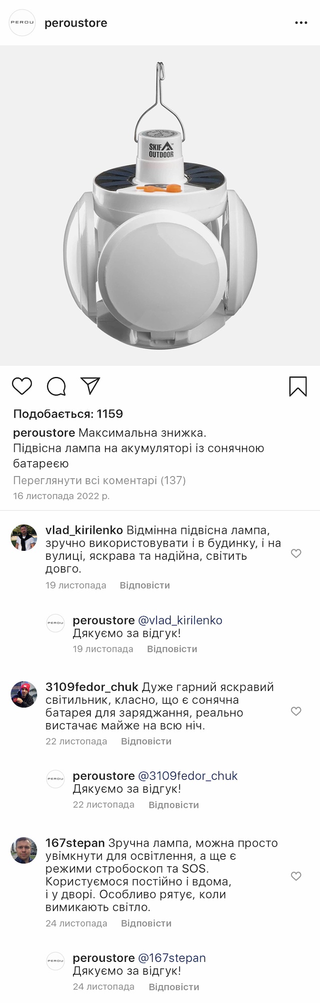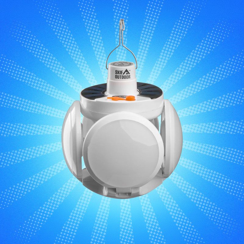 Світлодіодна лампа має високий ступінь яскравості та 4 режими освітлення, які перемикаються за допомогою однієї кнопки. Світильник заряджається від електромережі або через USB-порт від ноутбука, pawer-банку та автомобіля, а сонячна панель дозволяє підзарядити його навіть коли немає джерела енергії