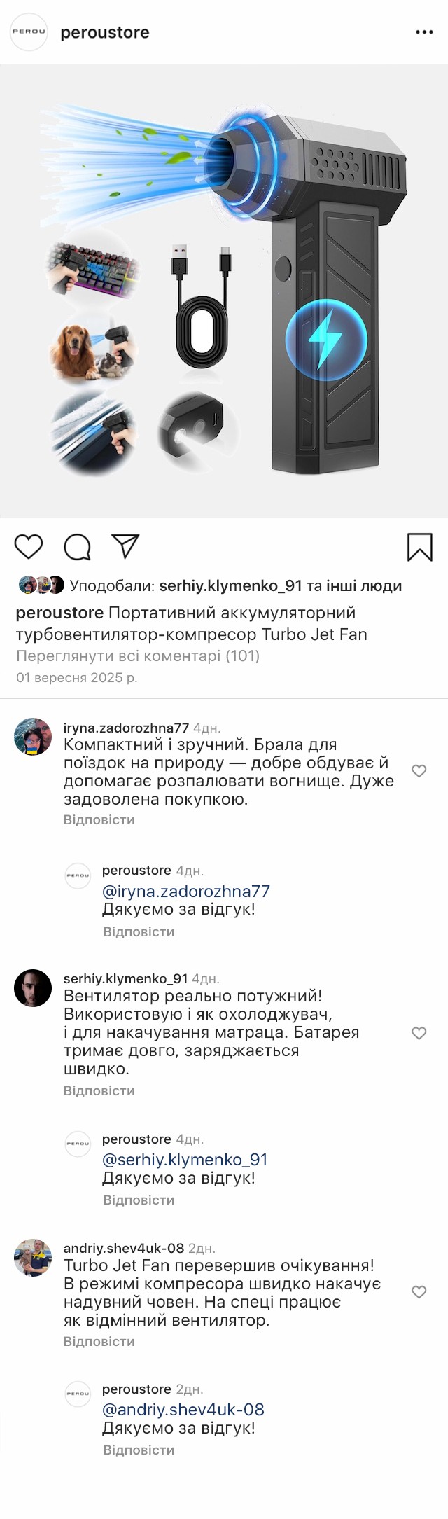 Портативний аккумуляторний турбовентилятор-компресор Turbo Jet Fan — це універсальний інструмент, який може стати в пригоді вдома, в гаражі або в подорожі. Завдяки високій швидкості обертання та потужному потоку повітря, він ефективно справляється із безліччю завдань: від швидкого сушіння поверхонь і розпалювання багаття до прибирання пилу з важкодоступних місць.