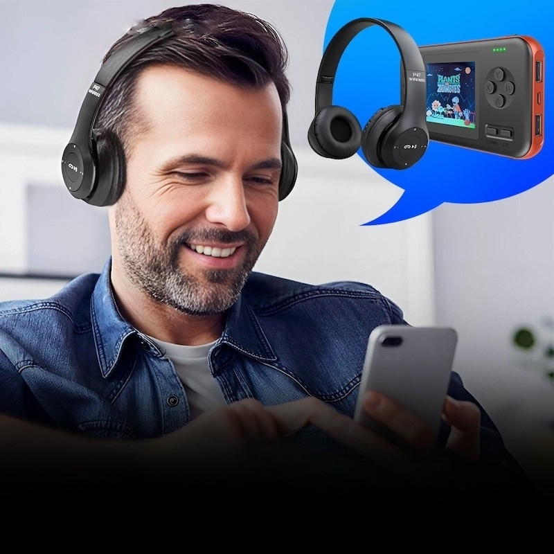 Безпровідні Bluetooth навушники Р47 з вбудованим мікрофоном і функцією шумопоглинання дозволяють слухати улюблену музику та розмовляти по телефону у будь-якому шумному місці, не відволікаючись на сторонні подразники. М’які накладні амбушури щільно прилягають до вух, а дужка, що регулюється під розмір своєї голови, гарантує їх комфортне використання протягом тривалого часу.