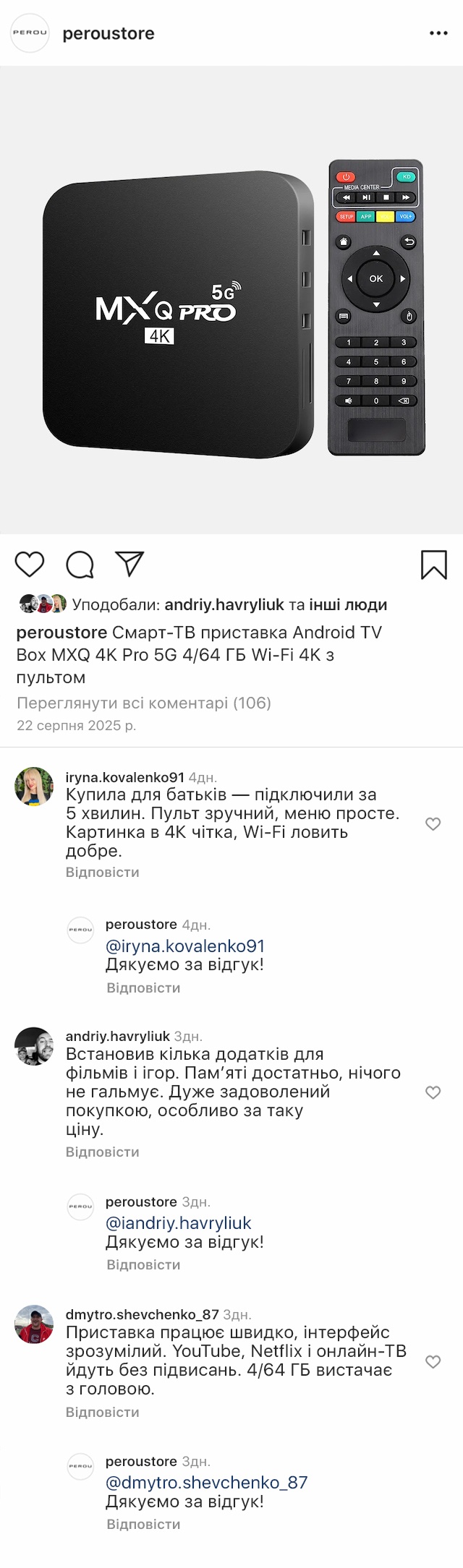Підтримка Wi-Fi 5G забезпечує стабільне підключення до мережі, а відтворення у форматі 4K дарує яскраве й деталізоване зображення. Зручний пульт керування дозволяє легко знаходити фільми, серіали та застосунки. Приставка проста у встановленні та використанні.