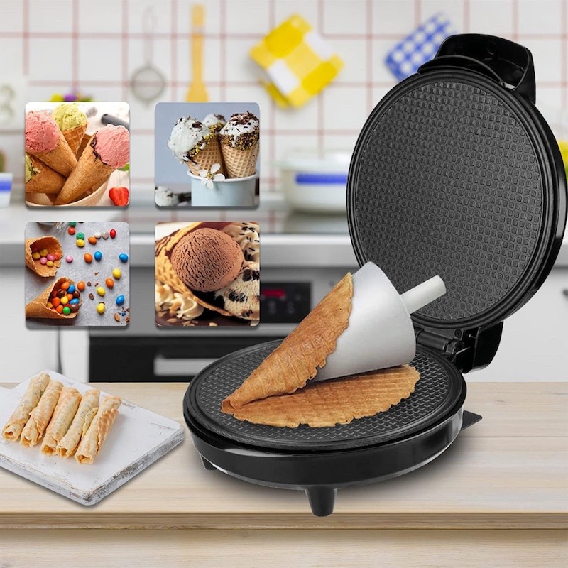 Електрична вафельниця RAF-220 призначена для приготування круглих і хрустких вафель, які можна загорнути в трубочки і наповнити фруктовою або кремовою начинкою. Рівномірний розподіл температури та антипригарне покриття робочих пластин забезпечують високу якість смаження вафлів з обох боків.
