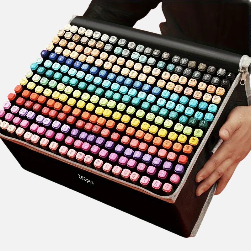 Маркери мають два пера – тонке та широке. Заправлені без кислотним нетоксичним чорнилом. Відмінно поєднуються, створюють плавні градієнти. Вся палітра кольорів цих маркерів складається з 262 кольорів.