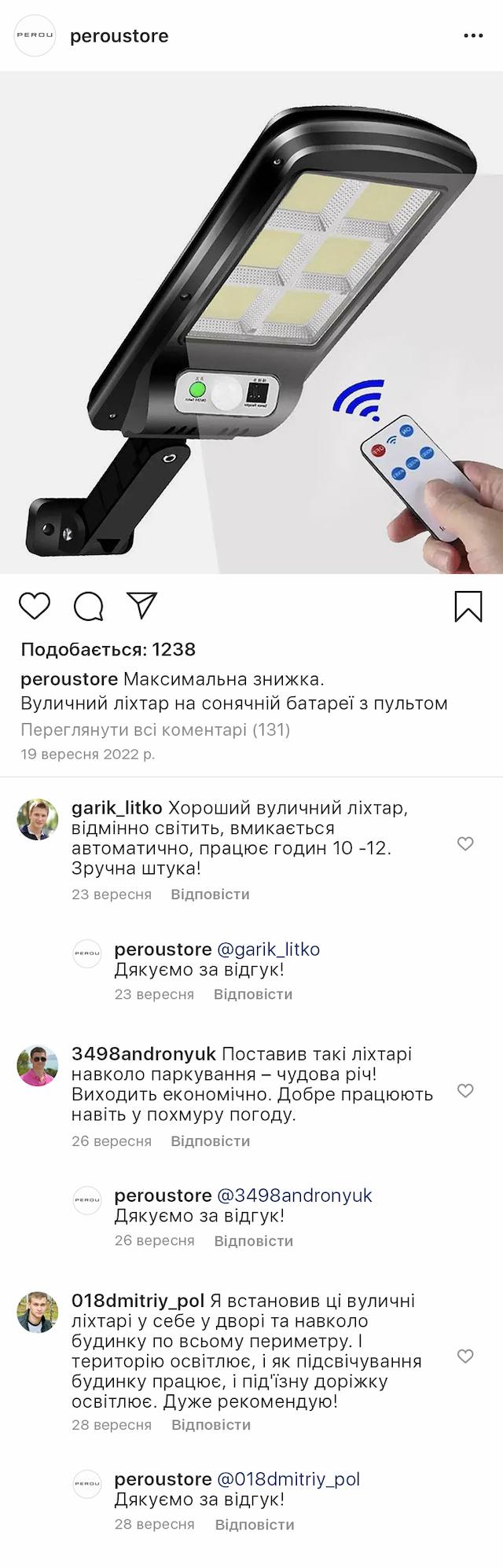 Вуличний ліхтар на сонячній батареї має вбудований акумулятор, що дозволяє економити електроенергію. Денна підзарядка від сонячного проміння дає яскраве освітлення вночі протягом 12 годин.